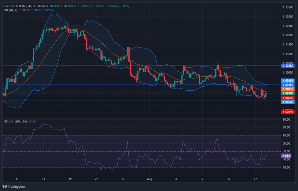 During the American session, the EUR/USD currency pair faced its fifth consecutive day of decline, shifting into negative territory. The US Dollar maintained its robust stance, benefiting from risk aversion and higher Treasury yields. Initially rising to approximately 1.0920, the pair later weakened, settling around the 1.0860 range.
